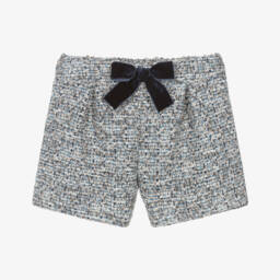 Grey sustainable cotton shorts for boys by Spanish brand Mayoral. Perfect for casual, relaxed days, they are Bermuda length and made in lightweight, stretch denim. In five-pocket jeans style, they have a washed and worn look, with creases on the legs. The waistband fastens with a popper and is adjustable, giving a good fit.