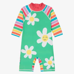 The boys yellow dinosaur sun protective suit by Frugi captures playful charm with its vibrant dinosaur print. Crafted from a soft, stretchy material, it provides UPF50+ protection, ideal for sunny days. The design features a stand-up collar, long sleeves, and a practical zip fastening at the back, ensuring ease of wear. Limited quantities available, so secure this delightful swimwear for optimal sun safety and comfort during outdoor adventures.