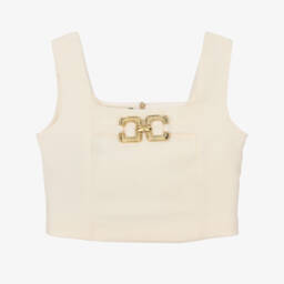 The girls black top with a gold buckle by Fun & Fun features a stylish square neckline and wide straps, crafted from soft crêpe fabric with a silky lining. Perfect for chic occasions, it includes a decorative gold buckle on the front and a branded zip pull at the back for easy fastening. Sitting elegantly on the waist, this exclusive piece is available in limited quantities, making it a must-have for the discerning wardrobe.
