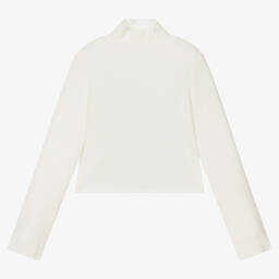 Super soft ivory hat for girls by Italian brand Fun & Fun, knitted in a cosy wool, cashmere and viscose blend. It has a faux fur pom-pom on top and a turned-up brim with a sparkling silver metal and diamanté logo sewn on the front.