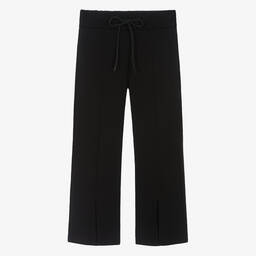 Girls stylish pale coral pink pleated trousers by Fun & Fun Couture. Made from lightweight and flowy crêpe with cotton shorts lining, they have wide legs and a comfortable wide waistband. One leg has coral pink and white stripes with 'Couture' script printed near the hem.