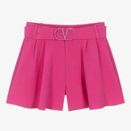 White shorts for girls by Fun & Fun, made in floaty crêpe. Great for dress-up looks, these stylish shorts have a pleated style and slanted pockets. They fasten with a simple button and zip, and have a detachable belt with an eye-catching logo buckle.