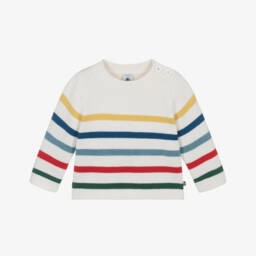 This ivory sweater for little girls by Petit Bateau combines warmth and charm. Made in a soft cotton and wool blend, it features delicate floral embroidery and button fastenings on the shoulder for easy dressing. Ribbed trims add a cosy finish.
