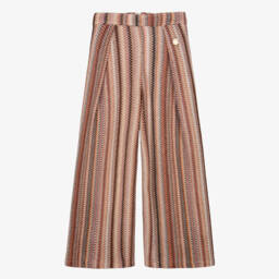 Girls zigzag patterned trousers by Missoni are crafted from a luxurious knitted fabric, showcasing a vibrant design in pink tones. Perfect for adding a playful touch to any autumn or winter wardrobe, these trousers offer comfort and style with their soft viscose lining. Designed for junior girls, they feature a wide-leg fit that pairs beautifully with a cosy jumper or chic top. Don't miss out on these limited-quantity pieces, ideal for fashion-forward young ones.