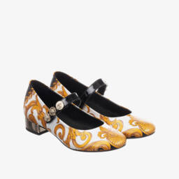 Girls black scrunchie by Versace features the brand's iconic Barocco print in luxurious black and gold tones.