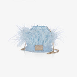 Girls blue feather bag by Junona is a delightful accessory designed for special occasions. Crafted with luxurious satin and adorned with whimsical ostrich feathers, it offers a touch of elegance. The lightweight cotton lining and adjustable golden chain strap provide versatility, allowing it to be carried by hand or worn over the shoulder. Featuring a practical drawstring closure and a chic metal logo plate, this bag is perfect for adding a touch of glamour. Limited quantities available—secure yours now.