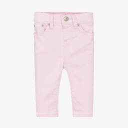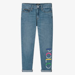 These blue jeans for teen girls by Ralph Lauren capture a cool, relaxed style. Made in washed denim, they have a wide-leg shape and classic five pocket styling. For instant brand recognition, there is a signature pony logo embroidered on one of the front pockets and a branded faux leather patch on the back. The adjustable waistband ensures a great fit for comfortable wear.