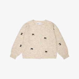 This grey cardigan for girls by NAME IT combines warmth with a touch of elegance. Made in a soft, wool-blend knit, this cosy layering piece features delicate white bows and pretty pearlised buttons.