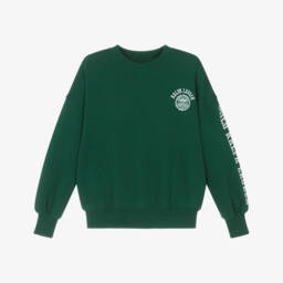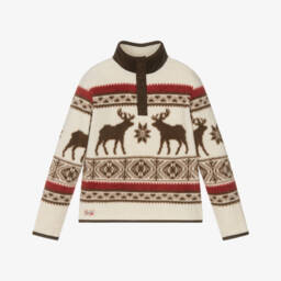 Ivory sweatshirt for girls by Ralph Lauren, made in soft cotton jersey with a warm, fleecy inside. Casual and comfortable, it features the brand's iconic Polo Bear logo on the front, wearing a red checked jacket. There are ribbed trims and a round neckline.