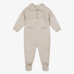 Girls Ivory & Pink Knitted Babygrow with Embroidered Collar