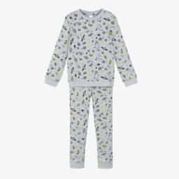 Cute red and ivory pyjamas for little girls by iDO, made in soft cotton jersey. Cosy and comfortable, the long-sleeved top has a large Hello Kitty print on the front, with stars and a script logo. The trousers have a matching all-over Hello Kitty print, with a gently elasticated waistband and ribbed cuffs.