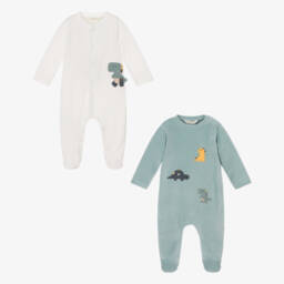 • Mayoral Newborn-Girls Ivory & Yellow Velour 2 Piece Babygrow Set | Childrensalon Outlet