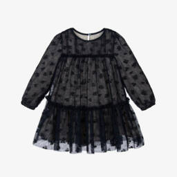 This pretty pink dress for girls by Mayoral is made in delicate tulle with an embroidered heart design. Lined in soft, stretchy jersey, it has a narrow ruffle trim and a button fastening on the back. The sheer fabric is enhanced with sparkly dots that catch the light beautifully.