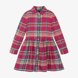This red dress for little girls by Ralph Lauren, features the brand's iconic Polo Bear motif on the front, with a script RL logo below. Cosy and comfortable, it is knitted in soft wool and has a flared skirt. Branded buttons on the shoulder add a signature finish.