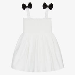 Dazzling silver shift dress for girls by Swedish brand The Tiny Universe. Made in soft tulle, it is decorated with silver sequins for a striking, mirrored look. With a gentle A-line shape, this eye-catching, short-sleeved dress has a jersey lining for comfort and a keyhole button fastening on the back. There is a small tonal rubber logo patch on the back for a discreet branded finish.