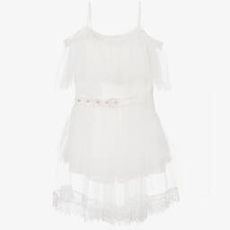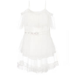 This white dress for teen girls by Fun & Fun combines comfort with a chic style. Knitted for warmth, it features black stripes on the waist, sleeves and pockets, with golden crest buttons for a touch of elegance. Cosy and snug, this dress is ideal for cooler days.