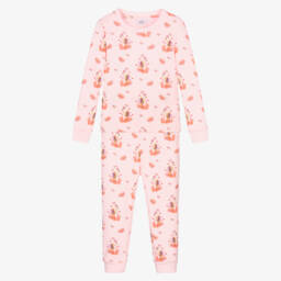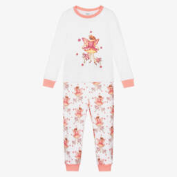 Girls white embroidered cotton pyjamas by Flower Fairies™ by Childrensalon are crafted in luxurious cotton blended with flame-retardant fibres, ensuring safety and softness. The charming design features delicate frills, pink picot trims, and glittery buttons for added flair. Embroidered with images from Cicely Mary Barker's original illustrations, they offer a personalised touch with your child's name. Perfect for cosy nights, these pyjamas are a last chance to buy with limited quantities available.