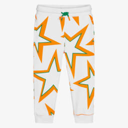Girls ivory trousers with star fringe detailing by Stella McCartney Kids offer a playful twist for the autumn and winter seasons. Made from soft knitted cotton, they feature vibrant fringed sides in orange and pink, adding a splash of colour to the all-over star print. The elastic waistband ensures a comfortable fit for everyday adventures. With limited quantities available, these trousers make a unique addition to any young wardrobe, perfect for adding a touch of fun to casual outfits.