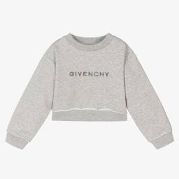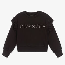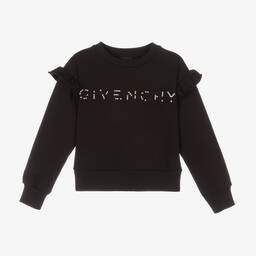 Boys black sweatshirt by luxury French brand Givenchy. There is an embroidered rainbow logo across the front and a rainbow 4G logo on the back hem. Made in soft mid-weight cotton jersey, it has a crew neck, ribbed trims and a pouch pocket on the front.