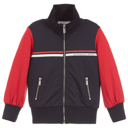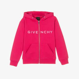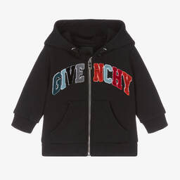 This boys hooded blue zip jacket by Givenchy, a luxury French designer, features a striking white varsity-style logo on the chest. Crafted from soft, mid-weight cotton jersey, it offers a cosy fleecy interior, ribbed trims, and handy front pouch pockets. The zip fastens with a branded pull, complemented by a subtle 4G logo on the back. Suitable for layering on chilly days, this stylish jacket is available in limited quantities, making it a last chance to buy.