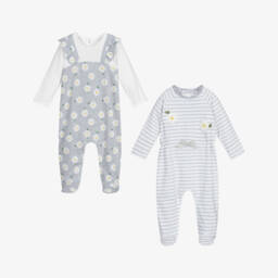 White and pale grey babygrow by Givenchy for boys and girls, printed with a signature 4G logo design. Fastening with poppers for easy dressing, this luxury babysuit is made in soft cotton jersey, ideal for babies delicate skin.
