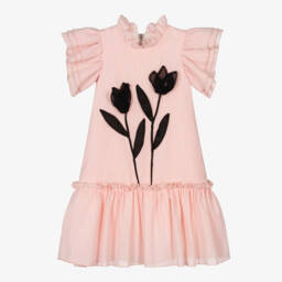 This charming ivory floral dress for girls by Graci offers a beautifully soft woven finish crafted from cotton. The elegant A-line silhouette features delightful ruffles on the neckline, sleeves, and hem, complemented by a unique floral appliqué design. Satin and tulle underlayers provide structure, while a cotton lining ensures comfort. An exposed back zip allows for easy fastening. With limited quantities available, it's the perfect choice for special occasions.