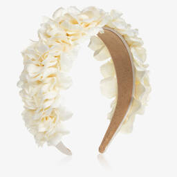 Exclusive to Childrensalon, a pink hairband for girls by Spanish brand Graci. Slipping delicately on the head, this fabric covered band is topped with floral decorations for a boldly beautiful style.