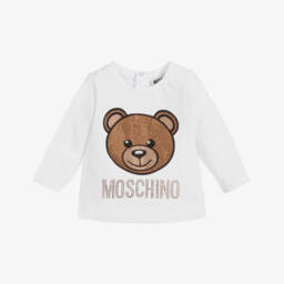 The grey standing bear long-sleeve tee by Moschino is a charming addition to any wardrobe. Featuring the iconic teddy bear print on soft grey fabric, it combines playful design with comfort. The snap button shoulder fastening ensures easy dressing for young ones. Perfect for cooler days, this versatile top pairs well with jeans or leggings for a relaxed look. Limited quantities available, making it a sought-after piece for the season.