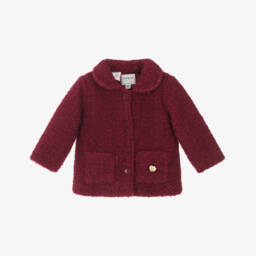 Gorgeous red velvet puffer coat for baby girls by Guess, with a detachable hood. Beautifully soft and warmly padded, the coat has a satin lining and elasticated cuffs to lock in warmth. For a feminine touch, there are sweet ruffle trims on the elasticated waistline and front pockets. The hood easily attaches with a zip and fastens with velcro at the front. For a distinctive designer finish, there is a rubberised logo patch on the chest and the exposed zip fastening has a branded triangle pull.