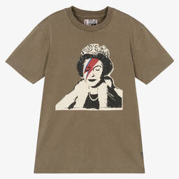 A blue T-shirt for junior boys from American brand Guess, made in soft cotton jersey. Forming part of the designer's Brandalised capsule, it has an iconic artwork piece from graffiti artist Banksy on the front. Cool and casual, with a traditionally cut crew neck and short sleeves it is an ideal addition to a designer T-shirt collection.