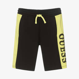 Grey marl colourblock shorts for teen boys by Guess. They are made in a super comfortable cotton mix, with navy blue side panels and the designer's logo appliqué in a cool vintage effect. The waist is elasticated with a navy blue drawstring for a great fit, and there are two handy pockets on the front, and one on the back.