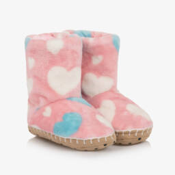 Girls comfy heart slippers by Hatley offer a delightful blend of style and comfort with their soft plush fabric and fleecy lining. Featuring a vibrant heart pattern, these slippers are designed for easy slip-on wear and are equipped with padded outsoles for added grip and safety. Ideal for keeping feet cosy during chilly days, these slippers are lovely for indoor adventures. Limited quantities available, so secure this pair while stocks last.