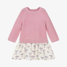 Lovely ivory and red dress for girls by Hatley, with a knitted bodice and a tulle skirt. Made in a super soft cotton and viscose blend the comfortable jumper-style bodice has a cable pattern and shimmery thread for added sparkle. The red, gathered tulle skirt is beautifully embroidered with glittery silver sequins and red embroidery.