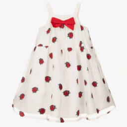White, short-sleeved T-shirt for girls by Hucklebones London, made in a super soft blend of cotton and modal jersey. Exclusive to Childrensalon, this pretty T-shirt has capped sleeves and a large, glittery gold bow on the front. Cool and comfortable to wear it has a tonal embroidered logo by the front hem for discreet designer styling.
