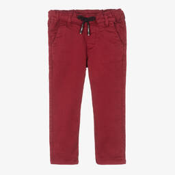 Beige chinos for boys by iDO Baby, made in soft cotton twill. They have four useful pockets and a black logo tab on the back. They have a comfortable drawstring waist that can also be internally adjusted for a good fit.