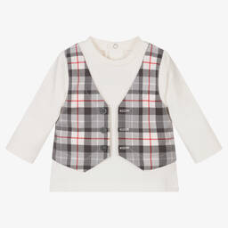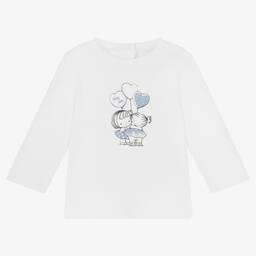 A charming puppy graphic T-shirt for boys by iDO, featuring a delightful dog motif that adds a playful touch. Crafted from soft and stretchy cotton jersey, this long-sleeved top provides comfort and ease of movement. The cosy cuffs and positive slogan prints enhance its cheerful appeal. With practical popper fastenings on smaller sizes, dressing is a breeze. Limited quantities available, making it a great choice for the cooler months.