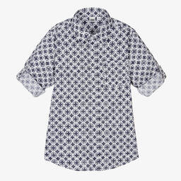 In a stylish patterned print, this white and beige fitted shirt for boys is by iDO Junior. Made in a soft cotton blend with a hint of stretch, it is super comfortable to wear. It fastens with buttons on the front and has a useful chest pocket.