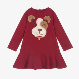 Casual beige dress for girls by iDO Baby, made in comfortable cotton jersey. This sweet dress has a cute girl print on the front, trimmed with sparkly glitter and diamanté, and a dropped hem for a relaxed look.