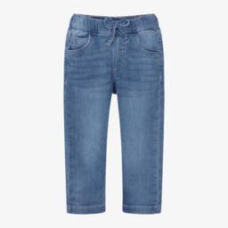 Pretty washed blue jeans for girls by iDO Baby, made in soft stretch denim. They are embellished with silver star diamantés on each leg for a sparkly look. Fastening with a button and zip, they come with a glittery pink belt with a bow on the front and have frayed hems for a stylish, laidback feel.