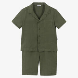 Boys grey linen ensemble by Il Gufo is crafted from soft and lightweight woven linen. This stylish set features a button-up shirt with a revere collar and a handy chest pocket, paired with relaxed shorts that include side seam pockets and an elasticated waistband with a drawstring for added comfort. Ideal for warm weather adventures, this set ensures both style and ease. Limited quantities available, making it a must-have addition to the wardrobe.