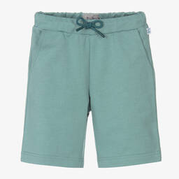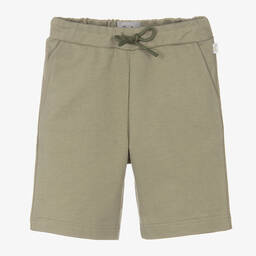 Orange cotton shorts for boys from luxury Italian brand Il Gufo, made from soft sweatshirt jersey. This everyday casual style features two slanted front pockets, a patch pocket on the back and a navy blue drawstring on the gently elasticated waist for improved fit.