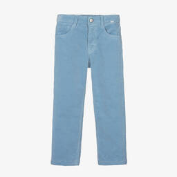 Yellow corduroy trousers for boys by luxury Italian brand Il Gufo. Made in soft cotton with a hint of stretch, they are super comfortable to wear. In a classic five pocket style and fastening with a zip and branded popper, they have an adjustable waistband that is gently elasticated around the back.