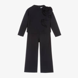 The girls ivory floral trouser set by Il Gufo highlights exquisite Italian craftsmanship. This elegant set features a lightweight, double-faced cady fabric with a sophisticated floral detail on the top. The stand-up collar and concealed zip fastening add a touch of refinement, while the wide-leg trousers with an elasticated waistband provide comfort. Suitable for special occasions, this set offers both style and ease of movement. Limited quantities available, so seize the opportunity to add this timeless piece to your collection.