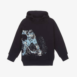 The boys red holiday hoodie by Il Gufo is crafted in soft, mid-weight cotton jersey, featuring cosy ribbed trims and a playful V-neck panel. The charming embroidered motif of Santa and Rudolf adds a delightful touch, complete with fluffy trims and red noses, suitable for festive fun. Designed for comfort and style, it's ideal for keeping warm during the chilly season. Limited quantities available, making it a must-have for any wardrobe.