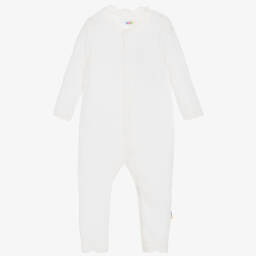 Ivory boxer shorts for boys, by Joha. Made in a luxuriously soft wool and organic cotton blend, these jersey boxers have a comfortable stretchy waist, and a cute rainbow striped logo tab. The outside has a brushed effect and the inside is ribbed, ensuring a warm and comfortable fit.