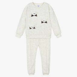 Sherpa fleece set for boys by Jamiks features a charming teddy bear detail on the cuff. The hoodie is lined with soft jersey, featuring playful 3D ears and a faux leather logo badge. Easy to wear with a zip fastening and chin guard, it pairs with elasticated joggers for comfort. Lovely for cosy adventures, this set is a last chance to buy with limited quantities available.