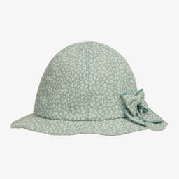 A lovely girls pink floral print hat by Jamiks, crafted from soft, lightweight organic cotton. Featuring a charming ditsy floral print in white, this hat has a little brim to shade the eyes and a bow detail on one side for added cuteness. The tie fastening at the back ensures an adjustable fit. Limited quantities available, so act fast to complete your little one's summer wardrobe with this adorable accessory.