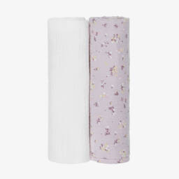 This set of two muslin cloths for baby girls by Jamiks, are made from soft, organic cotton. One is pale pink, the other is white with a charming unicorn design. Both are lightweight, breathable, and gentle against delicate skin, making them ideal for swaddling, burping, and general everyday use.