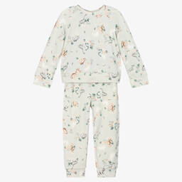 A cute pale pink trouser set for little girls by Jamiks. Made from a cosy bamboo viscose jersey, this soft and easy-to-wear set is printed with an adorable floral pattern. The trousers have an elasticated waist for a comfortable fit.