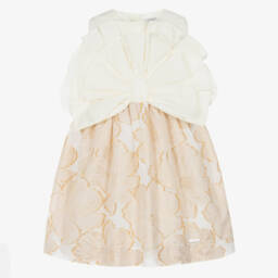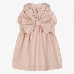 The pink sparkle ruffled dress is exclusive to Childrensalon, reflecting Jessie and James London's unique flair. Featuring a metallic pink hue, this sleeveless dress is adorned with a striking ruffled rosette on the bodice and a discreet zip at the back. The gathered skirt provides a delightful silhouette, and the light cotton lining ensures comfort. Perfect for special occasions, this dress is available in limited quantities, offering a last chance to buy a truly elegant piece.